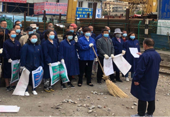 在三名黨支部書記的帶領下,黨員們分工明確、有條不紊,延鐵路專用線由南向北對積存垃圾、建筑垃圾、雜草進行清除?;顒又?,黨員們充分發揚不怕臟、不怕累的精神,有的掃地、有的撿拾垃圾、有的拔除雜草,呈現出一片熱火朝天的勞動景象。經過一個多小時的勞動,鐵路專用線兩側垃圾得到徹底地清除。