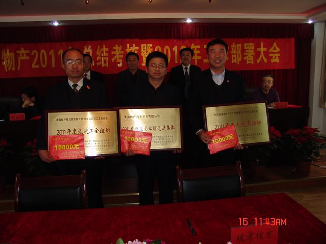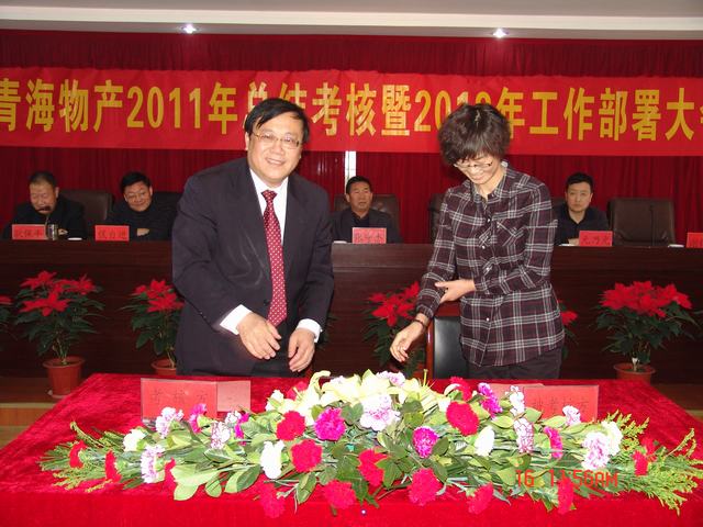 1月16日,集團召開2011年工作總結(jié)考核暨2012年工作部署大會,省國資委領(lǐng)導(dǎo)蒞臨大會、集團領(lǐng)導(dǎo)、各公司領(lǐng)導(dǎo)班子、總部全體員工及2011年度先進個人參加了會議。集團總經(jīng)理王玉輝作了題為《奮楫圖治夯實基,敦行致遠續(xù)新篇,在"十二五"科學(xué)發(fā)展的大道上闊步前進》的工作報告,黨委書記白家林作了題為《融入中心創(chuàng)先進,提升發(fā)展?fàn)幭蠕h,大力推進青海物產(chǎn)集團科學(xué)發(fā)展新跨越》的黨委工作報告.會上通報了集團2011年完成省國資委下達的經(jīng)營考核指標(biāo)情況及各公司主要工作成績和不足,對2012年工作任務(wù)及黨建工作進行了安排部署。